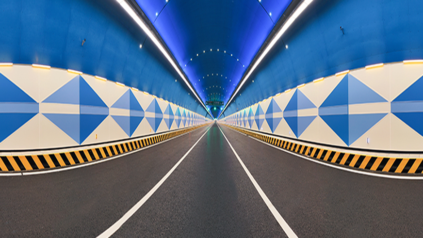 濟(jì)南望岳路隧道長(zhǎng)度約 2200 米,是濟(jì)南市規(guī)劃“兩橫三縱”城區(qū)快速路網(wǎng)的關(guān)鍵工程,對(duì)完善城市快速路網(wǎng)具有重大意義。隧道內(nèi)以“山水泉城”為主題,以泉水藍(lán)為底色,打造會(huì)“識(shí)天氣”的最美星光隧道,成為濟(jì)南市民和外地游客的網(wǎng)紅打卡地。