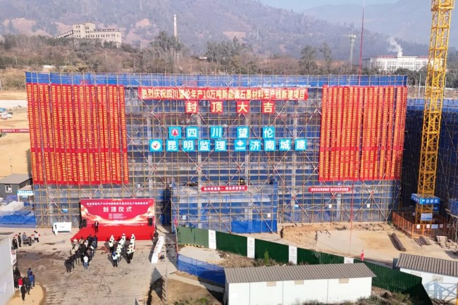 集團四川攀枝花望倫年產(chǎn)10萬噸新能源石墨材料生產(chǎn)線新建項目主體結(jié)構(gòu)全面封頂